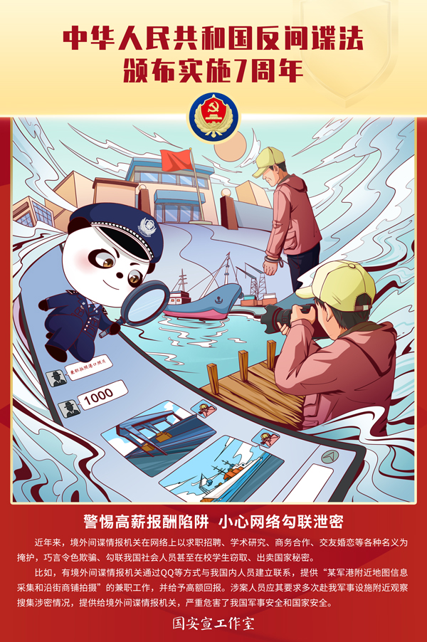 今年11月1日是反間諜法頒布施行7周年紀(jì)念日。反間諜法是我國國家安全法律制度體系的重要組成部分。七年來,以國家安全法為統(tǒng)領(lǐng)的國家安全法律制度體系逐步完善,反恐怖主義法、境外非政府組織境內(nèi)活動(dòng)管理法、網(wǎng)絡(luò)安全法、核安全法、生物安全法、數(shù)據(jù)安全法等一批法律相繼出臺,為維護(hù)各領(lǐng)域國家安全提供了堅(jiān)實(shí)法律保障。