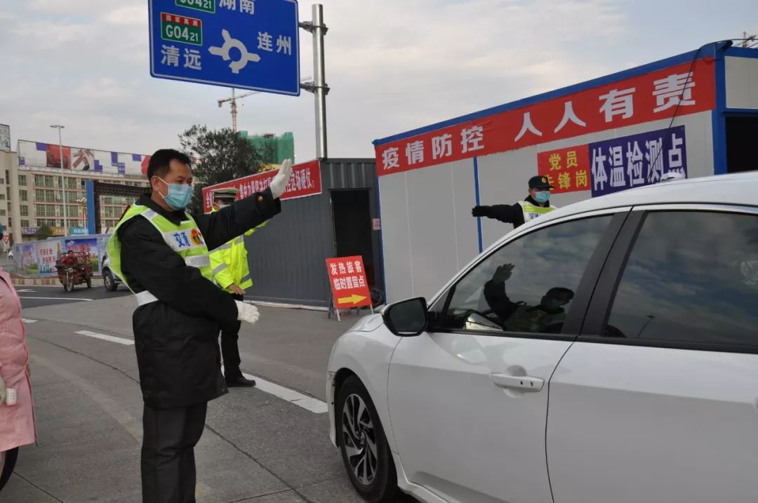車輛從許廣高速北行連州西出口駛來,身穿交通執(zhí)法制服的楊代基上前揮手示意停車,醫(yī)護人員隨即上前為駕乘人員測量體溫……從大年初一開始,楊代基每天在崗12小時,不斷重復(fù)這樣的動作配合交警攔停車輛進行檢查,此外,他還要負責(zé)做好往來人員登記工作。
