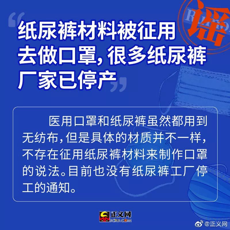 網(wǎng)上還流傳著“無紡布被征用,紙尿褲和衛(wèi)生巾工廠將停工”的謠言,嚇得一些網(wǎng)友趕緊囤貨,但實際上紙尿褲和衛(wèi)生巾使用的無紡布與口罩不是同樣的材質(zhì),無需擔(dān)心供貨問題。