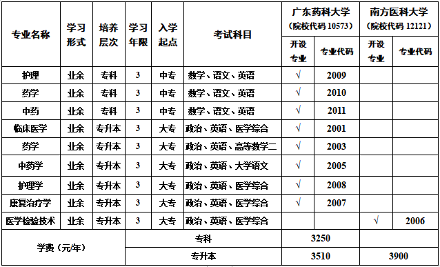 學(xué)校2023年繼續(xù)與廣東藥科大學(xué)聯(lián)合舉辦本科層次臨床醫(yī)學(xué)、護(hù)理、藥學(xué)、中藥學(xué)專業(yè)專升本學(xué)歷繼續(xù)教育,專科層次護(hù)理、藥學(xué)、中藥學(xué)專業(yè)學(xué)歷繼續(xù)教育;與南方醫(yī)科大學(xué)聯(lián)合舉辦本科層次醫(yī)學(xué)檢驗(yàn)專業(yè)專升本學(xué)歷繼續(xù)教育,歡迎有志向提升學(xué)歷的衛(wèi)生技術(shù)人員報(bào)讀。