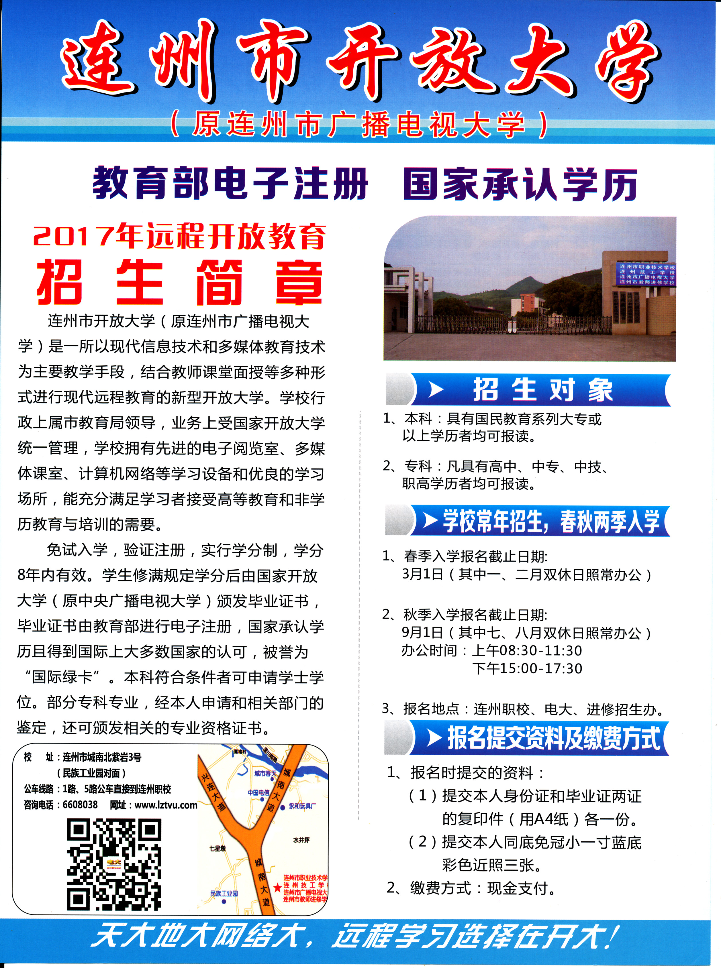 連州市開放大學(xué)(原連州市廣播電視大學(xué))2017年招生簡章