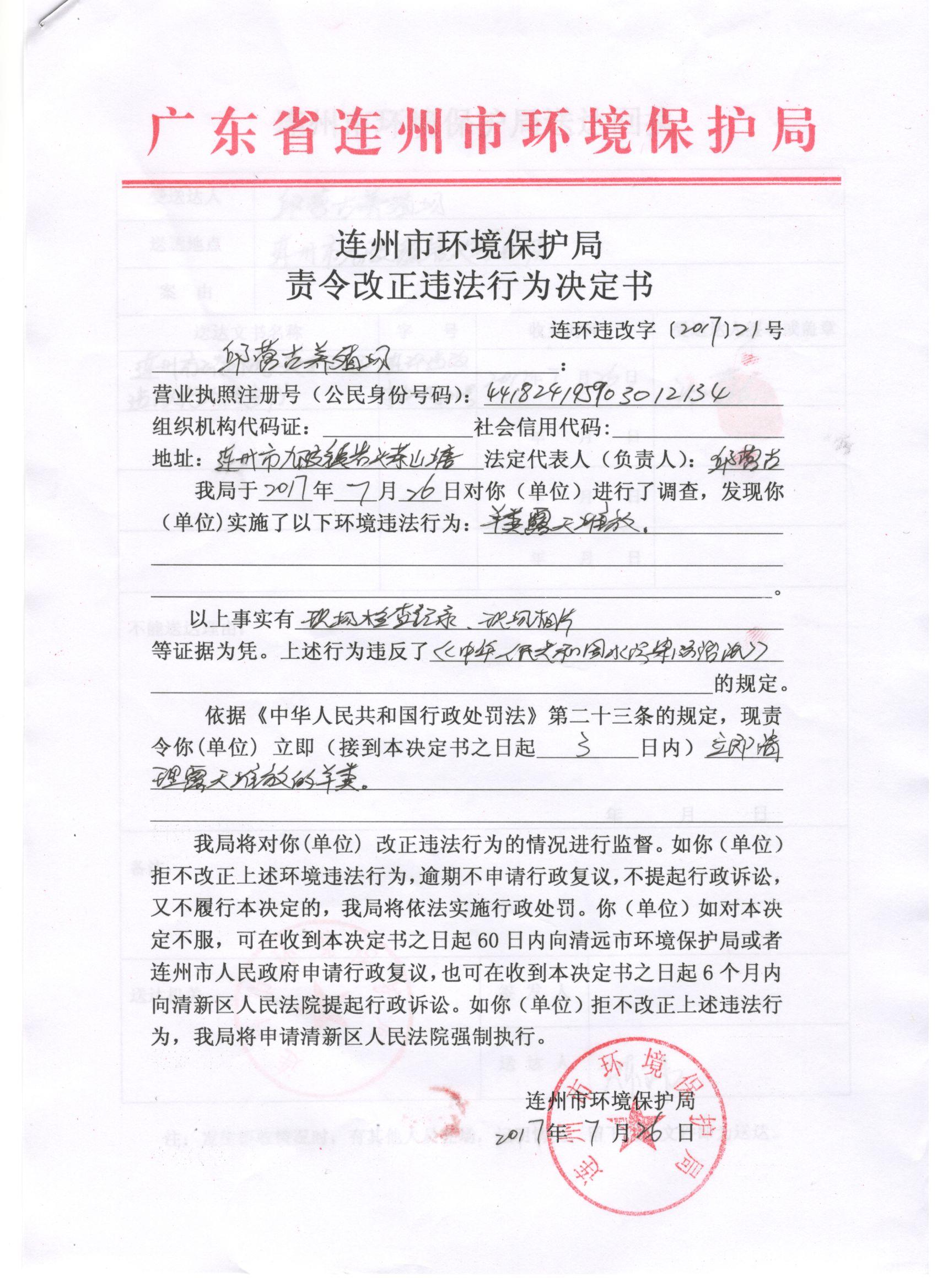 連環(huán)違改字[2017]21號(hào)