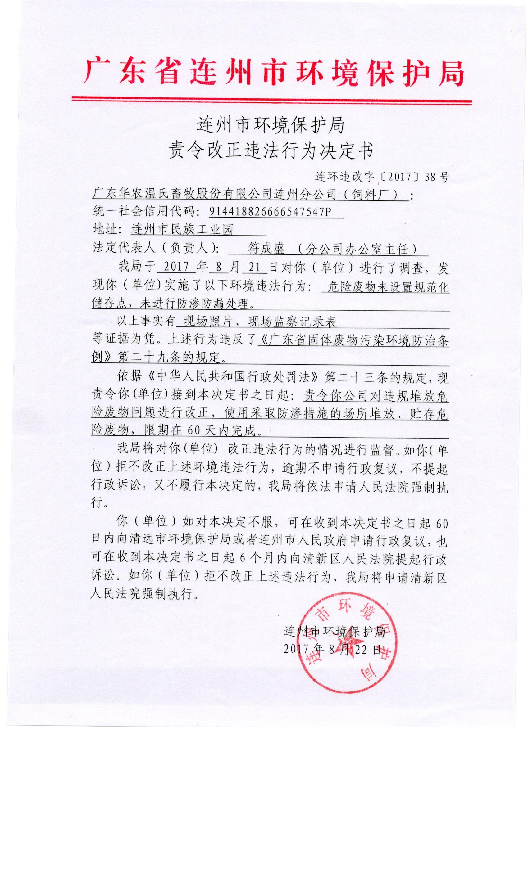 連環(huán)違改字[2017]38號
