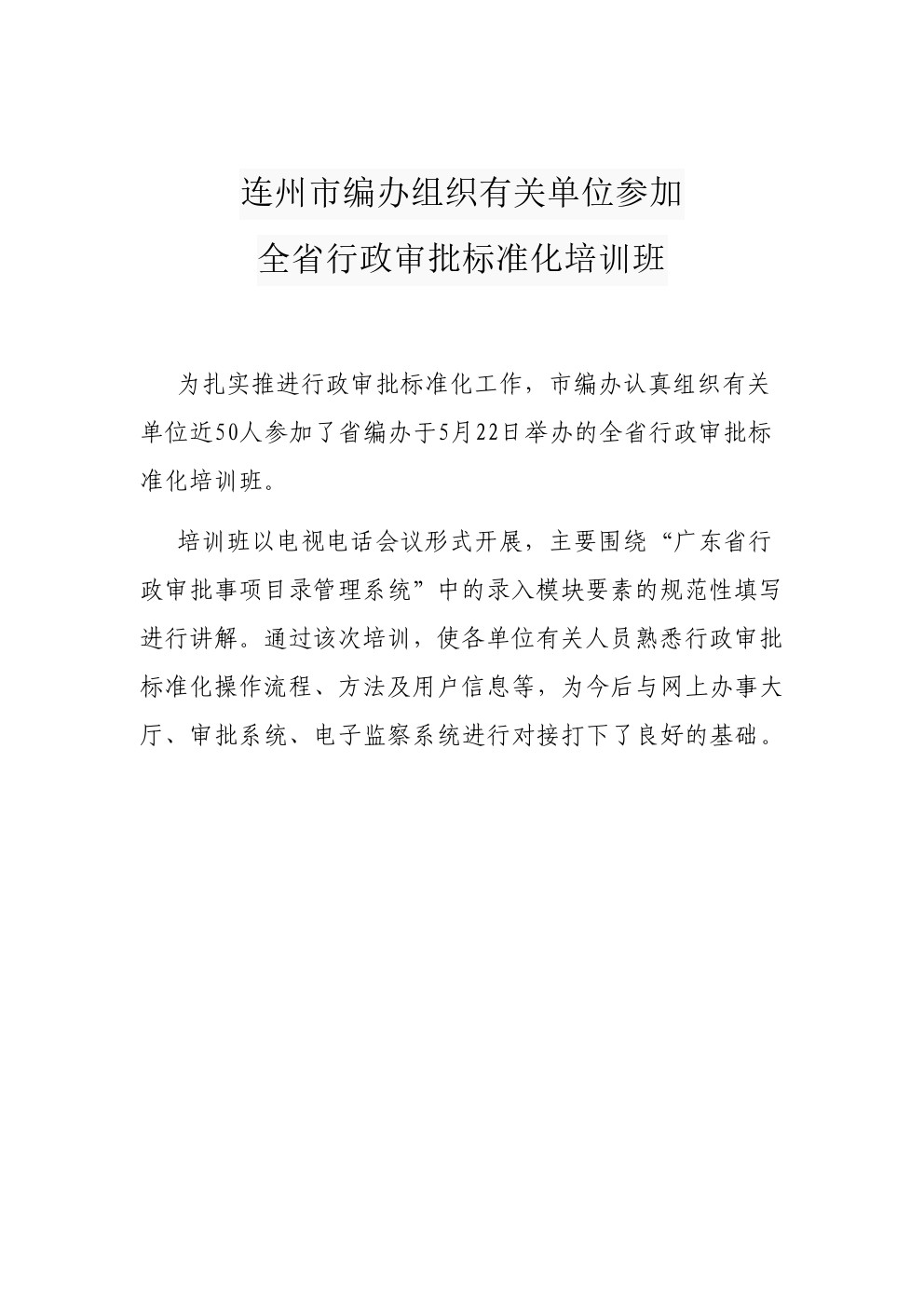 連州市編辦組織有關(guān)單位參加全省行政審批標(biāo)準(zhǔn)化培訓(xùn)班