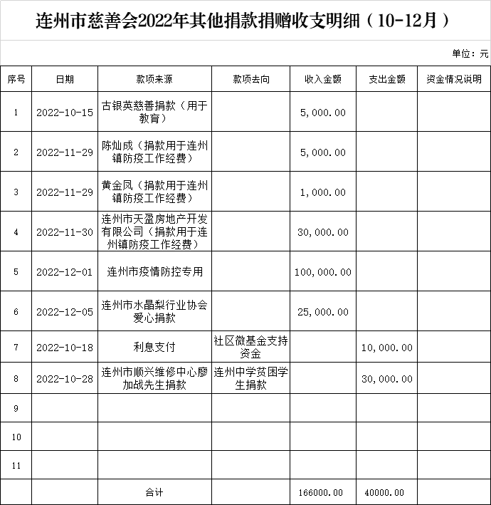 關(guān)于連州市慈善會2022年第四季度捐贈收支明細(xì)的公示