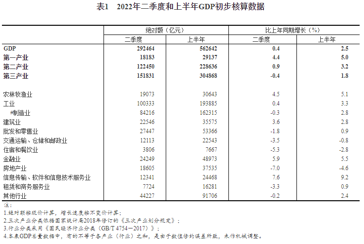 (轉(zhuǎn)載)2022年二季度和上半年國內(nèi)生產(chǎn)總值初步核算結(jié)果