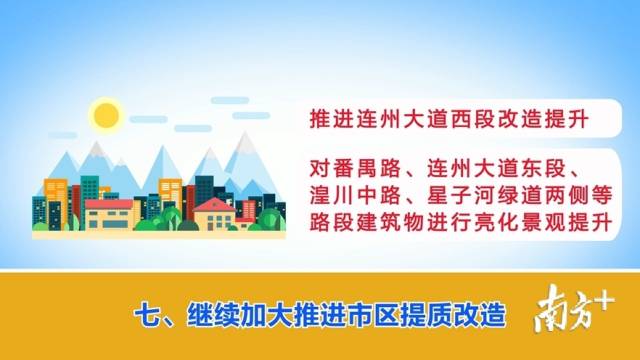 七、繼續(xù)加大推進(jìn)市區(qū)提質(zhì)改造。推進(jìn)連州大道西段改造提升。對(duì)番禺路、連州大道東段、湟川中路、星子河綠道兩側(cè)等路段建筑物進(jìn)行亮化景觀提升。(主管部門:市住房城鄉(xiāng)建設(shè)局)