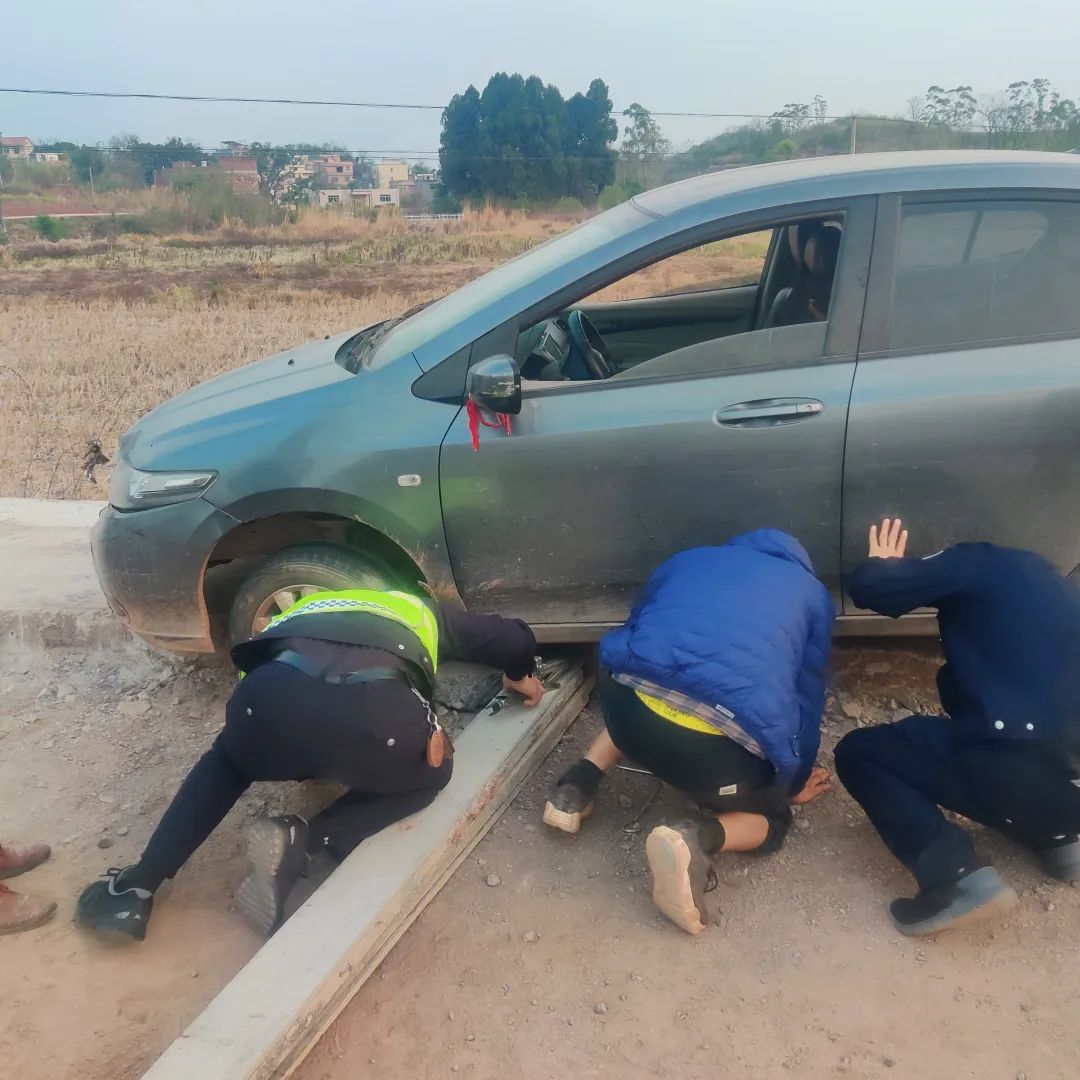 近日,星子派出所民輔警在執(zhí)勤途中,路遇群眾車輛發(fā)生事故的求助,經(jīng)了解,該名群眾的車子底盤卡在被掉落的路基上,無法動彈。見此情況,該所民輔警及時上前救助,找來一根橫木墊在車輪后方,協(xié)助群眾將車倒回路面,汽車“脫困”可以正常行駛。