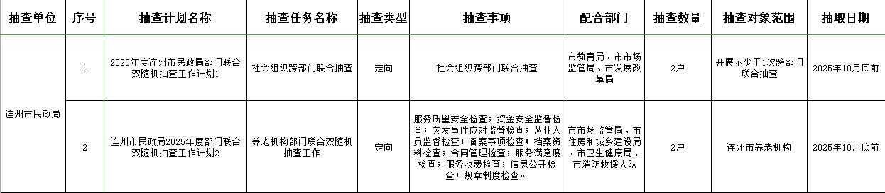 連州市民政局2025年度部門聯(lián)合雙隨機抽查工作計劃(跨部門)