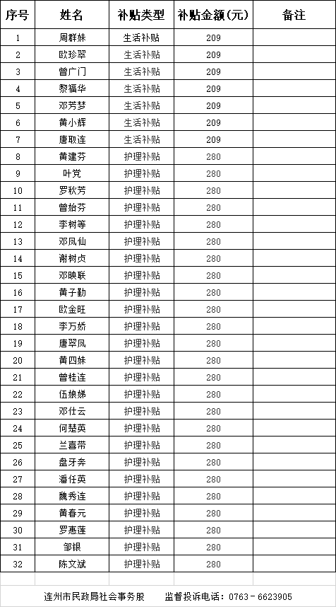 連州市2025年3月新增殘疾人兩項補(bǔ)貼名單