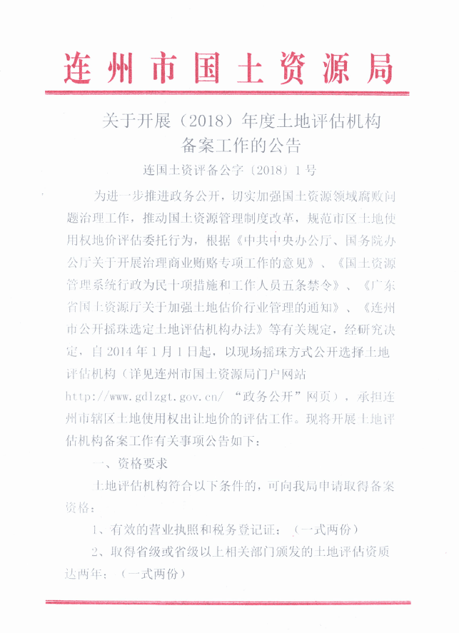 關(guān)于開展(2018)年度土地評(píng)估機(jī)構(gòu)備案工作的公告