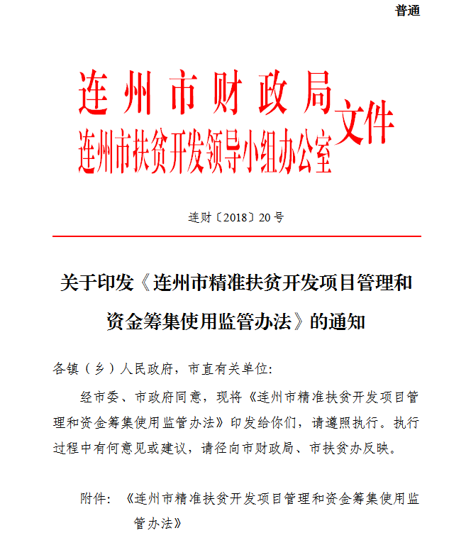 關于印發(fā)《連州市精準扶貧開發(fā)項目管理和資金籌集使用監(jiān)管辦法》的通知
