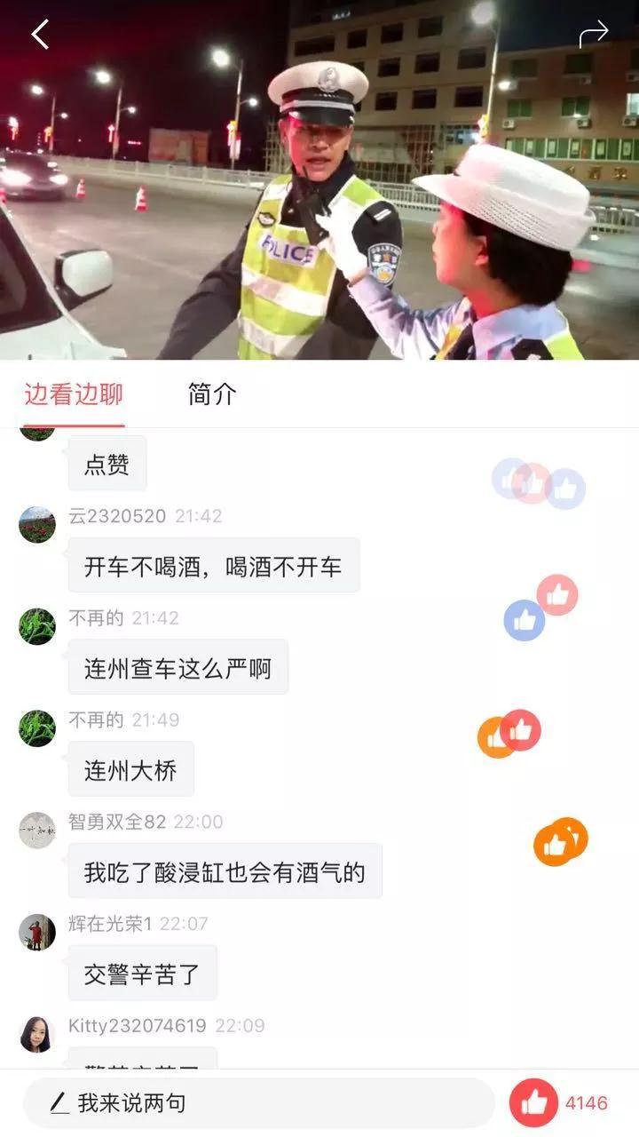據(jù)了解,此次連州交警網(wǎng)絡直播查酒駕,是公安部統(tǒng)一部署的執(zhí)法公開中的一次行動。交警蜀黍表示,通過網(wǎng)上直播查酒駕,既是對外公開執(zhí)法程序、執(zhí)法依據(jù)的一次行動,也是一次良好的安全教育,在互聯(lián)網(wǎng)+時代下,這樣的公開執(zhí)法行動將越來越多。