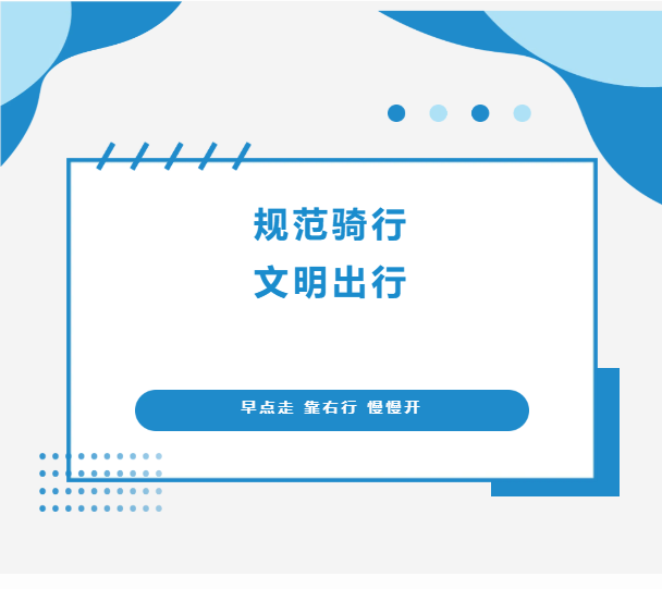 二、養(yǎng)好習慣,文明騎行。積極踐行“早點走、靠右行、慢慢開”的文明騎行理念。騎行前預留充足時間,提前出發(fā),盡量避開高峰時段;騎行時請自覺靠右行駛,在非機動車道內通行。摒棄僥幸心理,不急不躁,穩(wěn)穩(wěn)抵達,讓文明習慣內化于心、外化于行。