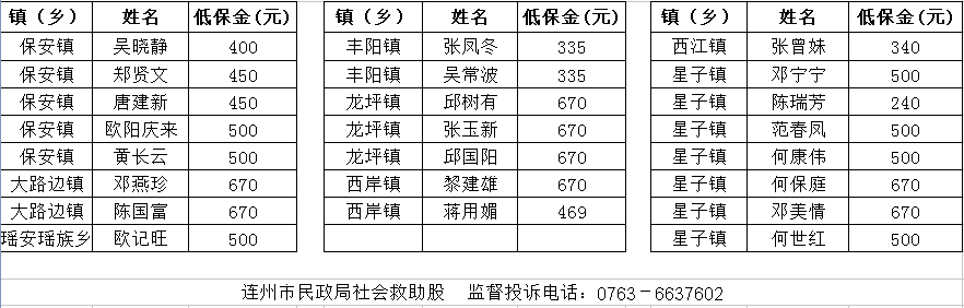 2022年12月新增低保對象名單